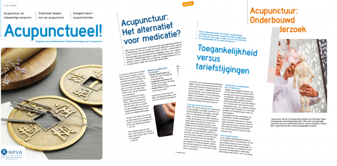 Met trots presenteren wij de eerste editie van Acupunctueel! in een vernieuwde vorm. Dankzij de samenwerking met Medisch Dossier kunnen we onze boodschap over de waarde van acupunctuur breder verspreiden. Dit biedt kansen voor een groter bereik, meer zichtbaarheid en tegelijkertijd voor een efficiëntere inzet van middelen. Wij zien dit als een belangrijke stap in de verdere professionalisering van onze vereniging én in het vergroten van het maatschappelijke draagvlak voor acupunctuur.